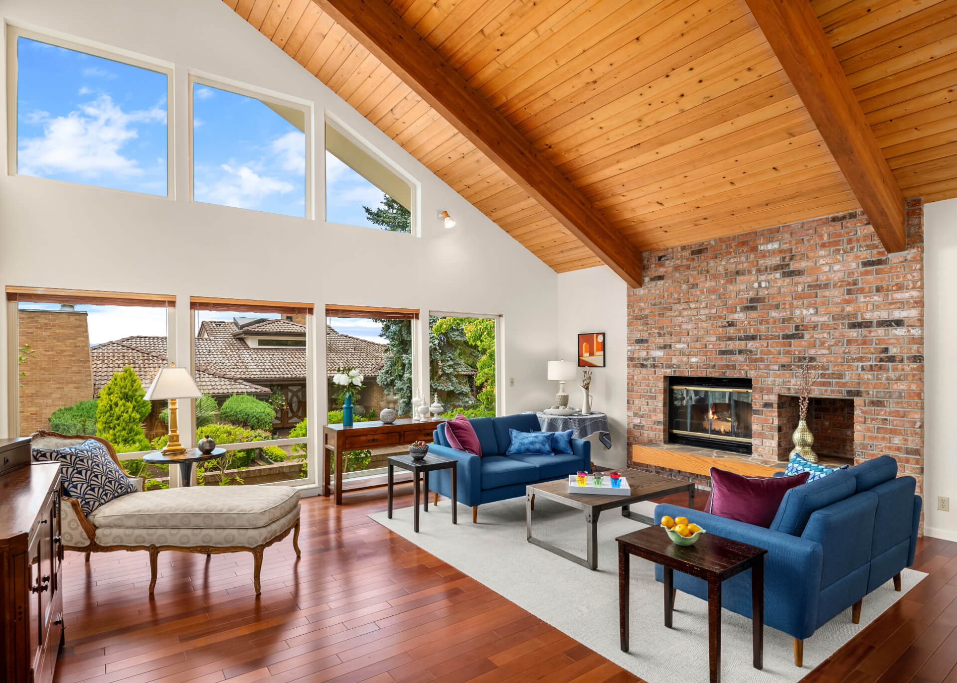 The key with staging and photographing living rooms is to make them look inviting and warm, yet stylish and clean with lots of natural light.